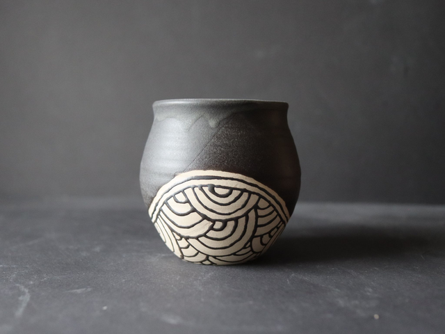 Black Ceramic Cup with Wave Patterns