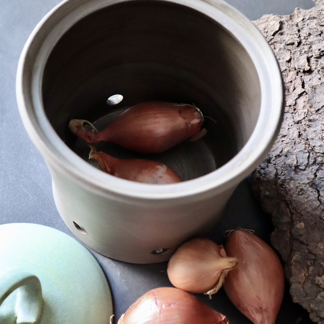 Ceramic Jar for onions/shallots, natural green brown