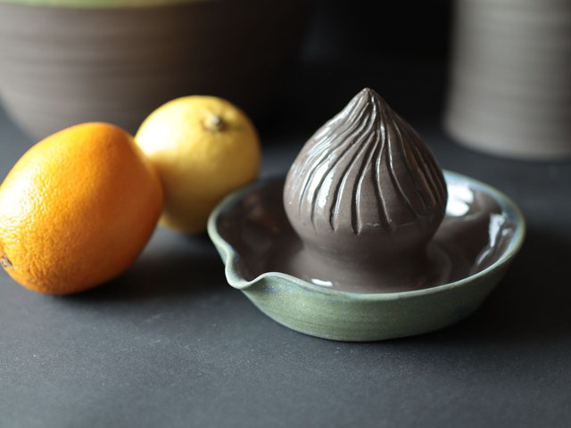 Citrus Juicer for oranges, lemons, forest colored pottery | WOODLAND Pottery by Jeannette Lee