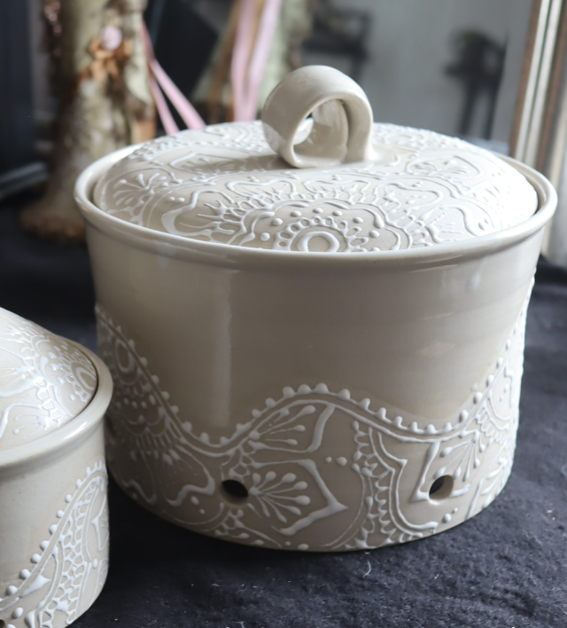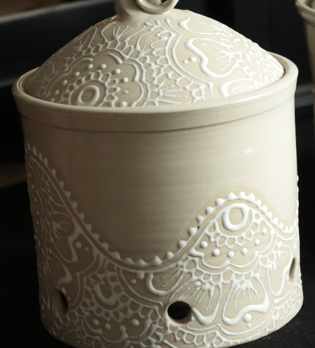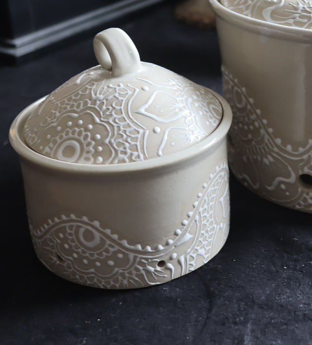 Handmade Potato, Onion and Garlic Jars, Mandala Pattern, Stoneware | Mandala Ceramic Collection by Jeannette Lee