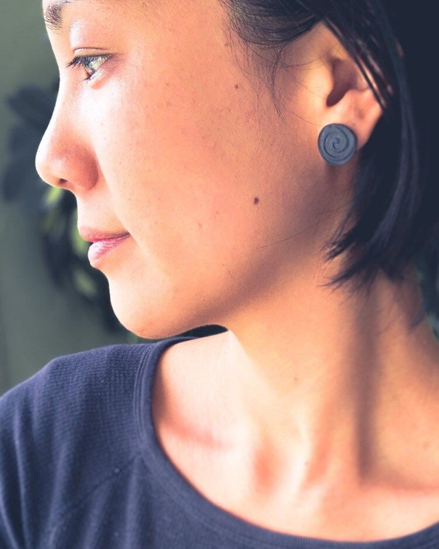 Twirl-Swirl Porcelain Jewelry | 925 Sterling Silver/silver-plated | Ceramic Ear Studs, Black & White, handcrafted, earrings | Ceramic Jewelry by Jeannette Lee